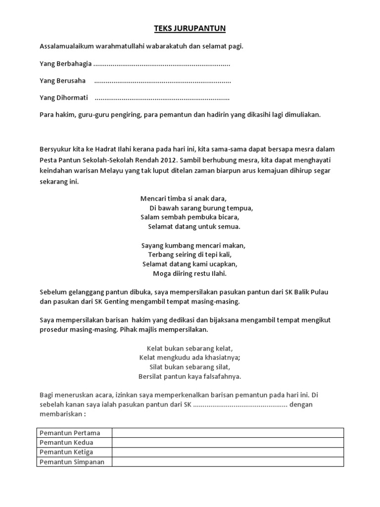 Teks Mc Pertandingan Pantun Skbt 2016 Pdf